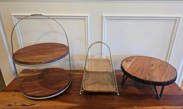 2 vintage 3-tiered serving trays.